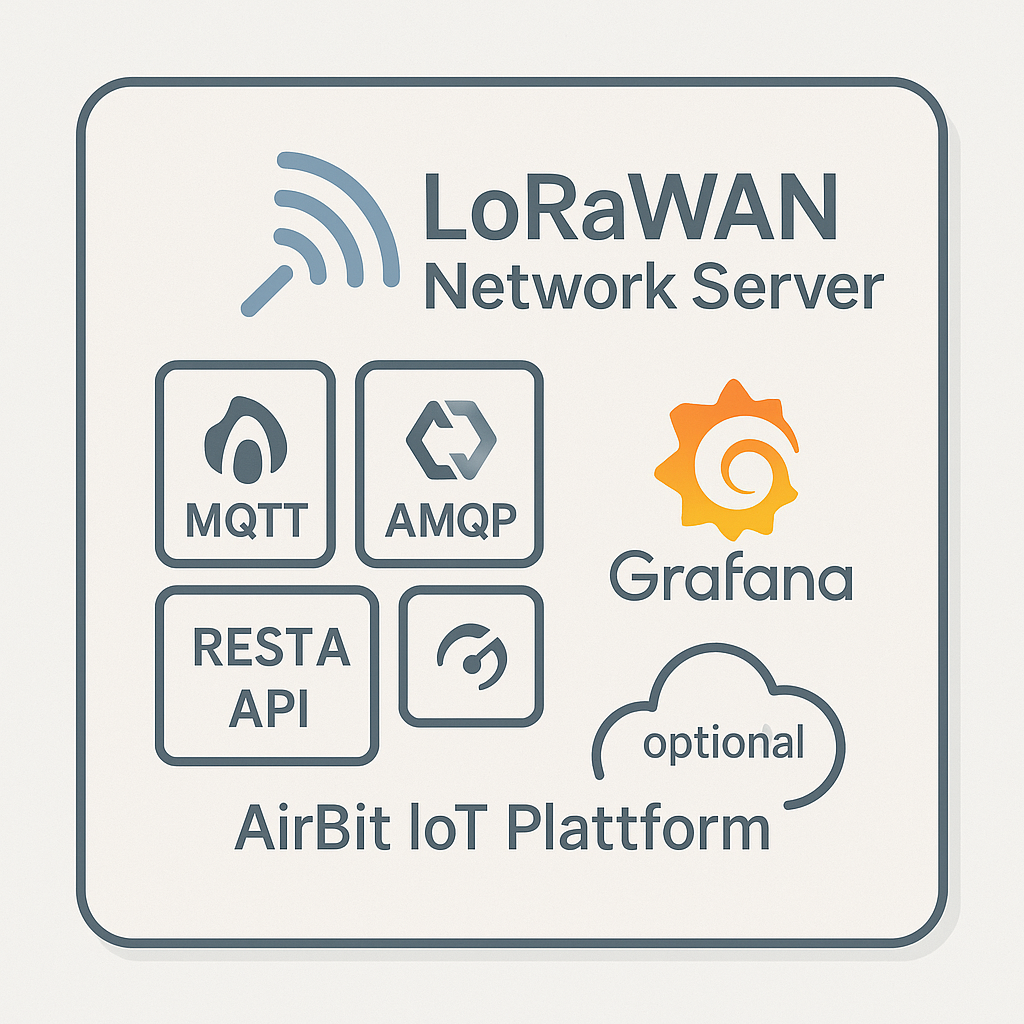 Software: LNS + AMQP + MQTT + Grafana + AirBit IoT-Plattform